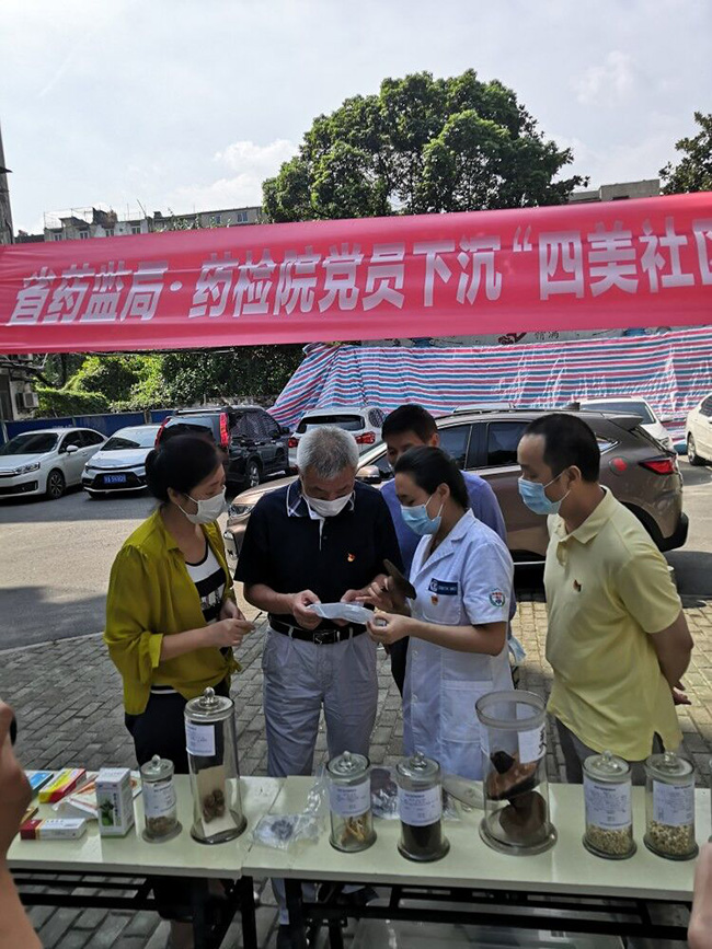 “健康驿站”项目是通过广泛征集社区居民“微心愿”,帮助辖区居民实现“微梦想”,并对“微诉求”进行汇总、梳理和分类,利用省药监局职能优势量身打造,推行群众点单、社区派单、党员干部接单“三单制”医疗卫生服务模式,精准服务社区居民。活动现场,我院中药检验中心中药材鉴定专家、下沉党员、志愿者通过向居民发放宣传资料、展示安全用药板报、回收不合格药品、现场讲解名贵中药材真伪辨别、免费赠送外用药等方式,开展药品安全法律法规、安全用药知识宣传普及活动,并向老龄居民、特殊困难群体赠送200个家庭小药箱,向“健康驿站”赠送疫情防控科普书籍30套。通过现场交流互动,进一步增进居民对药品安全监管工作的认知和理解,有效地提高公众的安全用药理念和实用知识,形成药品安全知识科普宣传的良好氛围。